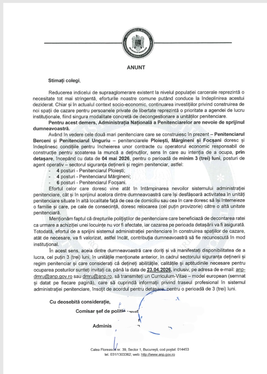 Ne-am opus modului neprofesionist în care a fost susținut acest demers, considerând că a fost promovat în grabă. Am prezentat argumente bazate pe datele disponibile, care arată că penitenciarele menționate au un număr de personal comparabil cu cele din care ar urma să se facă detașările, ceea ce ridică semne de întrebare privind oportunitatea măsurii.
