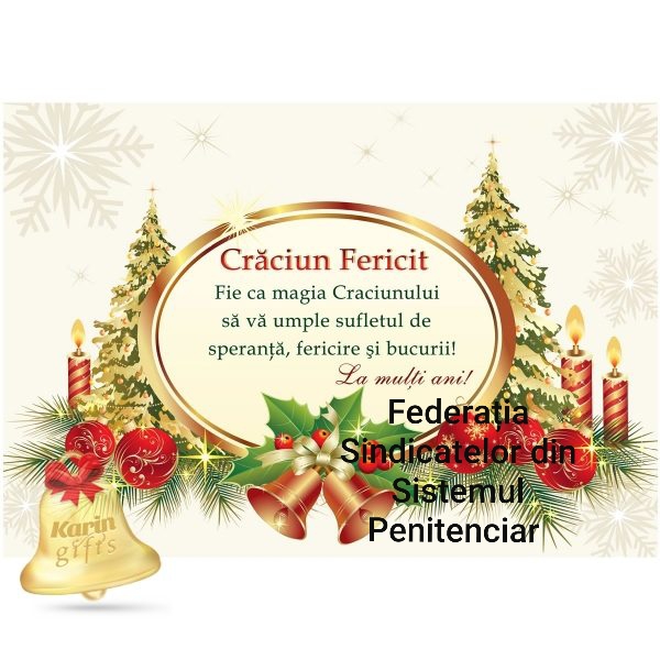 Cu ocazia sfintei sărbători a Nașterii Domnului, Federația Sindicatelor din Sistemul Penitenciar,  urează tuturor funcționarilor publici cu statut special din sistemul administrației penitenciare,  fericire, sănătate și mult noroc!